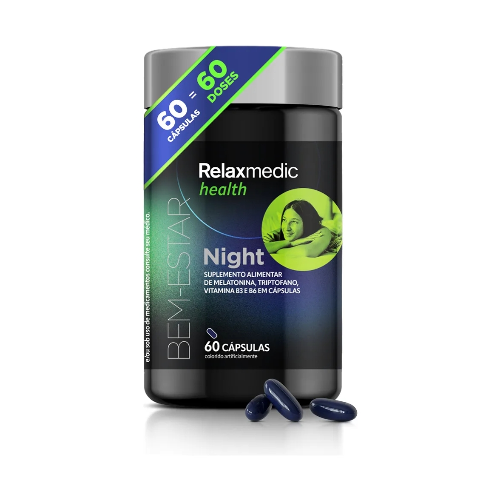 O RelaxMedic Relax Night é um suplemento alimentar desenvolvido para auxiliar na rotina do sono e no relaxamento diário. Sua fórmula combina melatonina, triptofano e extrato de maracujá, ingredientes tradicionalmente utilizados para promover sensação de tranquilidade e contribuir para um descanso mais equilibrado, sendo uma opção prática para o cuidado diário.